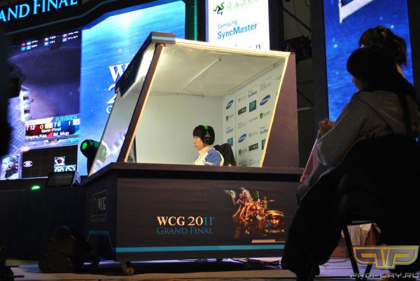 Корейский старкрафтер в матче на главной сцене